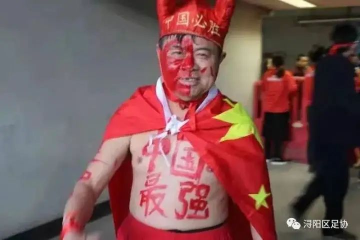 在给中国足球队加油的时候,他就在脸上写“中国”二字。很多时候他还会在身上写着大大的红字。就这样,穿着红衣一身涂着红彩的桂二牛每次出现在足球看台上,都是一道醒目的风景。